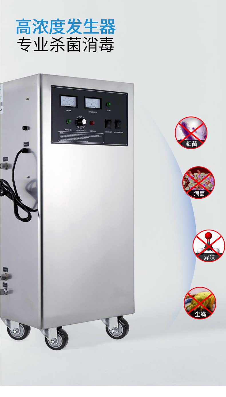 配置:30克線路板,30克發(fā)生管,氣泵,電壓表,電流表,濃度調(diào)節(jié)旋鈕,電源指示燈,臭氧指示燈,電源開關,電壓指示燈,精密濾水系統(tǒng)、冷凝系統(tǒng)、干燥系統(tǒng)、流量計臭氧輸出口,冷卻水進出水口。