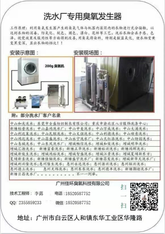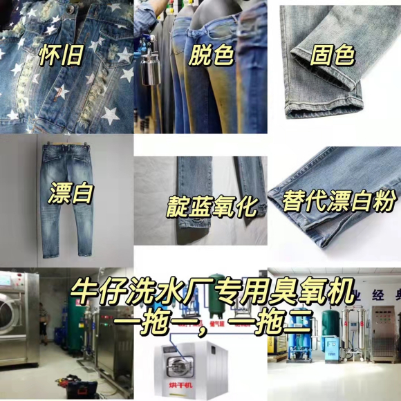 工作原理: 利用臭氧發生器產生的臭氧氣體與機器內滾筒內的衣物進行充分接觸,以達到衣物的消毒、防氧化、脫色、固色、漂白、花樣等工藝。 臭氧是強氧化氣體對所有染色具有超強脫色能力。臭氧可破壞這些染料的發和助色基團,從而達到脫色效果,但臭氧對各種有機染料的作用是不同的。對堿性染料脫色90%需反應5分鐘,而對直接染料則需5-10分鐘。相比之下,偶氮染料更容易被氧化。染料中常見的基本組成為羥基偶氮色素。這些化合物與03反應時,首先是臭氧又如羥基苯甲烷系色素的酚酞通過內酯環的可逆性開、閉環產生顏色與失色,從而可用作指示劑。堿性酚酞易與03起反應。臭氧在電子豐富的C=C鍵位進行1:3加成反應,可切斷色素骨架從而脫色。 臭氧應用牛仔服飾脫色已在沿海地區廣泛應用,可以幫助企業大大降低運營成本、減少原始高溫蒸汽脫色費用,提高企業經濟效益。該設備操作簡單(只需把牛仔服飾放進脫色專用旋轉機,旋轉5-15分鐘即可到達需要的色彩效果)、無二次污染、易脫色、色彩自然。 通常客戶需要將在洗水過程反染在牛仔褲內側的染料去除掉,因為染料直接接觸皮膚是非常不合理,也是不環保的做法,因此很多化學藥劑就用來處理這些染料;但是在達到效果的同時又產生了一系列的問題,比如環境的污染,工作環境惡劣,對操作工人的個人安全的影響等等問題。 現在可以提供一個能在完全密封安全的環境下,利用臭氧處理牛仔褲;臭氧的來源就是空氣,而臭氧處理完了以后,又會回到空氣中,一般臭氧在空氣中存在時間只有25秒,又會轉化成氧氣,非常環保,對人體、環境非常重要;而且經過臭氧處理的牛仔系列服裝還有特殊的視覺效果,同時還能處理各類T-shirt