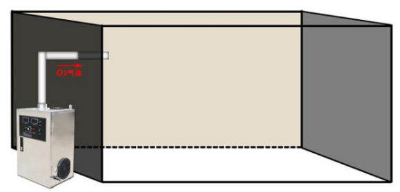 2.2插管投加 機器放置在房間外,在墻上打一個孔,利用硅膠管將臭氧氣體通入房間中。